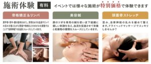 ※各施術ブース全て、当日先着順でのご案内となりますことご了承くださいませ(事前のご予約は不可とさせていただきます)