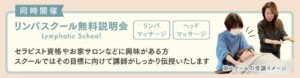 当日は、リンパスクールの説明会も同時開催しておりますので、将来セラピストとして手に職をつけたい方も是非足をお運びください!